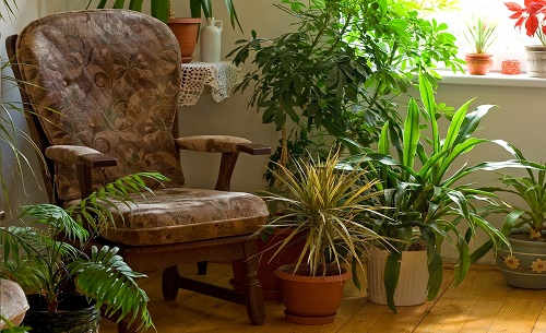 La mayoría de las plantas de interior necesitan mucha luz, aunque algunas especies (principalmente plantas de hojas verdes tupidas) prefieren la sombra. Las plantas con flores o las especies de hojas rayadas o moteadas sólo se adaptan a un lugar muy luminoso. La luz solar directa (la del mediodía) en verano es mala para todas las plantas de la casa, a excepción de las cactáceas y las suculentas. En invierno, un pequeño rayo de sol no puede hacerlas daño.
