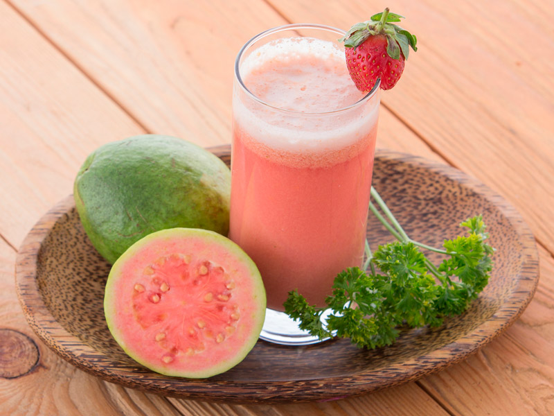 Corta en pequeños trozos la guayaba, al igual que las fresas, vacíalas sobre la licuadora o procesador de comida junto con un buen chorro de leche. En caso de querer un licuado refrescante, puedes agregar la fruta congelada o simplemente utilizar hielos. Licua, sirve en un vaso y listo, puedes tomarlo en ayunas una o dos veces a la semana.