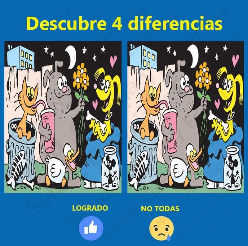 Encuentra 4 diferencias. Publicado por decretosmetafisicosyosoy el 20 octubre, 2020 Gracias por compartir. No olvides compartir: Compartir en LinkedIn (Se abre en una ventana nueva) LinkedIn Compartir en X (Se abre en una ventana nueva) X Compartir en Tumblr (Se abre en una ventana nueva) Tumblr Haz clic en Pinterest (Se abre en una ventana nueva) Pinterest Más Comparte en Facebook (Se abre en una ventana nueva) Facebook Compartir en WhatsApp (Se abre en una ventana nueva) WhatsApp Me gusta Cargando... Relacionado