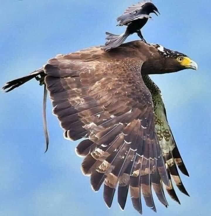 El único pájaro que se atreve a picotear un águila es el cuervo. Se sienta sobre su espalda y muerde su cuello. Sin embargo, el águila no responde ,ni lucha con el cuervo; no gasta tiempo ni energía en él, simplemente abre sus alas y comienza a elevarse más alto en los cielos. Cuanto más alto es el vuelo, más difícil es para el cuervo respirar y luego el cuervo se cae por falta de oxígeno. Deja de perder el tiempo con los cuervos. Con esa gente dañina que sólo se acerca a tu vida para intentarte desestabilizar ,para proyectar sobre ti sus propias tormentas. Solo llévalos a tus alturas y se desvanecerán solos.