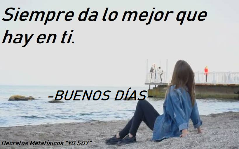 -BUENOS DÍAS- Publicado por decretosmetafisicosyosoy el 21 diciembre, 2020 Cuando das lo mejor de ti, cosa maravillosas llegan a tu vida ! Que tengas un excelente día ! No olvides compartir: Compartir en LinkedIn (Se abre en una ventana nueva) LinkedIn Compartir en X (Se abre en una ventana nueva) X Compartir en Tumblr (Se abre en una ventana nueva) Tumblr Haz clic en Pinterest (Se abre en una ventana nueva) Pinterest Más Comparte en Facebook (Se abre en una ventana nueva) Facebook Compartir en WhatsApp (Se abre en una ventana nueva) WhatsApp Me gusta Cargando... Relacionado