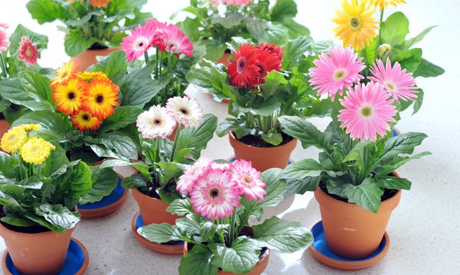 El suelo de las gerberas debe mantenerse siempre húmedo, este es un factor clave para su desarrollo. Puedes regarlas hasta 3 o más veces al día siempre y cuando no haya encharcamiento. En verano, refresca las flores vaporizándolas con agua para evitar que se sobrecalienten por el calor.