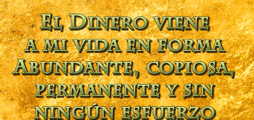 Debes sentirte bien respecto al dinero para atraer más hacia ti. Como es natural, cuando las personas carecen de suficiente dinero no se sienten bien respecto al mismo, porque no tienen suficiente. ¡Pero esos sentimientos negativos son los que impiden que te llegue más dinero! Debes parar el ciclo, y eso lo consigues sintiéndote bien con el dinero y dando gracias por lo que tienes. Empieza a sentirte bien y di Tengo más que suficiente, Hay dinero en abundancia y viene hacia mí, «YO SOY» un imán para el dinero, Me encanta el dinero y yo le gusto al dinero, Cada día recibo dinero, Gracias. Gracias. Gracias.
