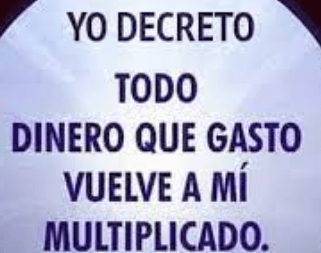Tienes en tu interior el poder para elevarte por encima de tus dificultades económicas. Dentro de ti hay riquezas. ¡Da la orden de que se manifiesten! Imagina con emoción un torrente de billetes viniendo hacia ti de todas partes, en abundancia. Afirma: «Todo el dinero que yo gasto, regresa a mí multiplicado. Yo Soy Abundancia». Repite una y otra vez esta afirmación mental y verbalmente con fuerza y convicción, meditando en ella y manteniendo esa intención para que, por la ley de atracción lo consigas.