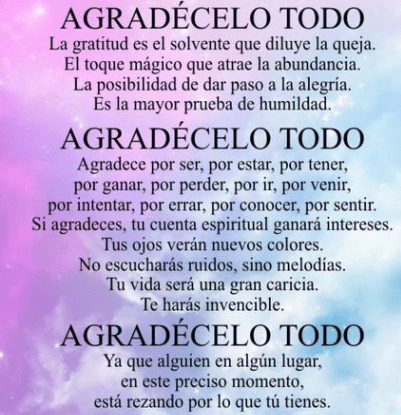 Da gracias a Dios por todo lo que te suceda: todo —lo negativo, lo positivo, el karma, las calamidades— porque son maestros, son lecciones.