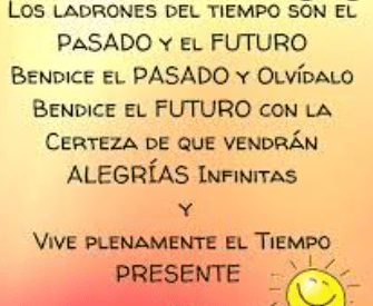 El pasado y el futuro son los ladrones del tiempo. Conviene bendecir el pasado y olvidarlo; bendecir el futuro, con la certidumbre de las alegrías sin fin que nos traerá y vivir plenamente en el momento presente.