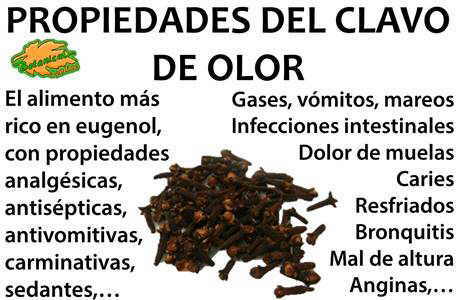 El eugenol es una sustancia presente en el clavo de olor que actúa como antiséptico natural y en la eliminación de marcas de acné, en el equilibrio de la salud de su piel y evita el surgimiento de arrugas. Un té de clavo de olor también puede amenizar dolores de cabeza, cólicos menstruales, bajar la fiebre, aliviar dolores de diente y inflamaciones en la garganta.