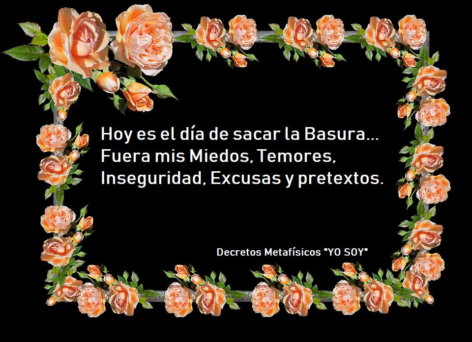 Hoy es día de sacar la basura. Publicado por decretosmetafisicosyosoy el 28 julio, 2022 Saca todos tus miedos, temores, inseguridades, excusas y pretextos… Al sacarlos llegara a tu vida esa paz que tanto necesitas y mereces… No olvides compartir: Haz clic para compartir en LinkedIn (Se abre en una ventana nueva) LinkedIn Haz clic para compartir en X (Se abre en una ventana nueva) X Haz clic para compartir en Tumblr (Se abre en una ventana nueva) Tumblr Haz clic para compartir en Pinterest (Se abre en una ventana nueva) Pinterest Haz clic para compartir en Pocket (Se abre en una ventana nueva) Pocket Más Haz clic para compartir en Facebook (Se abre en una ventana nueva) Facebook Haz clic para compartir en WhatsApp (Se abre en una ventana nueva) WhatsApp Me gusta Cargando... Relacionado