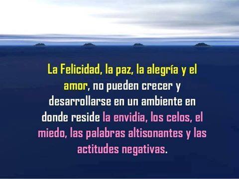 Siempre ten presente, que con actitudes negativas y palabras altisonantes, la felicidad, la paz, la alegría y el amor, no pueden crecer en ti.
