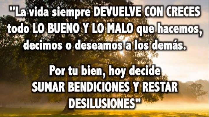 La vida siempre devuelve todo lo bueno y lo malo que hacemos, es por eso que debemos tener cuidado con lo que damos.