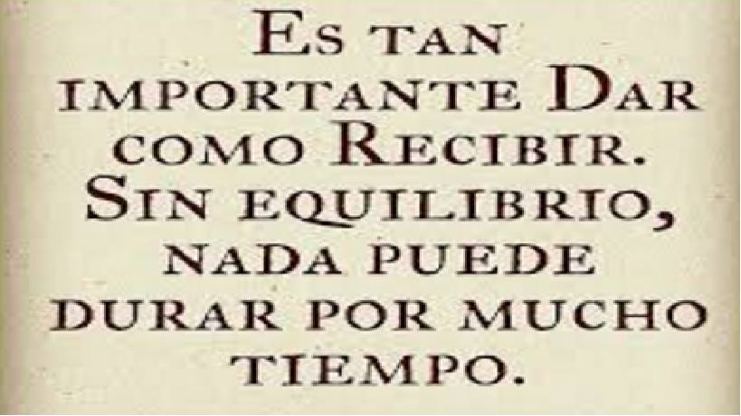 Dar y recibir es una ley exacta, a veces las personas piensan que dan sin recibir nada a cambio o que dan y reciben poco, sin embargo en la vida la ley de dar y recibir